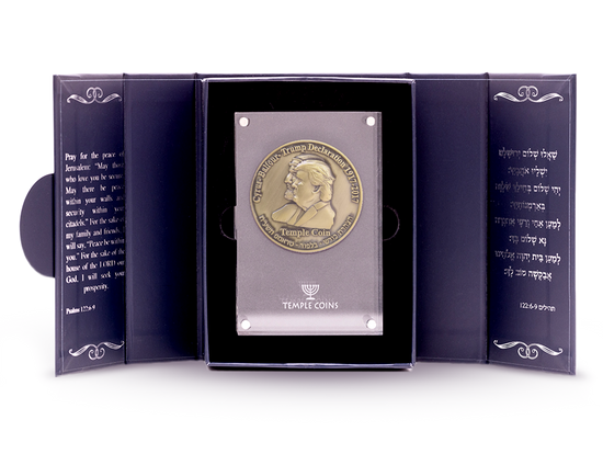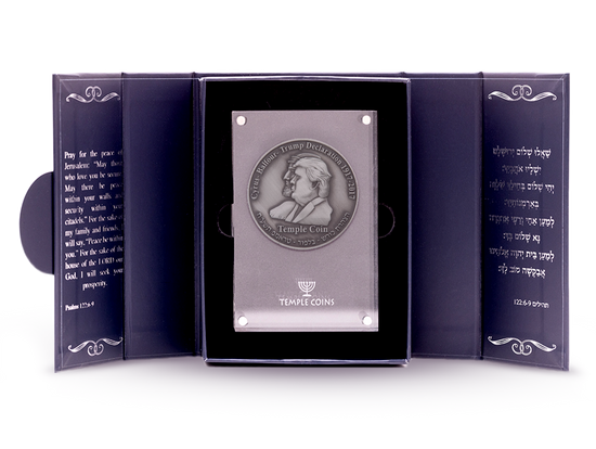 The Torah mandates an annual donation of a half-shekel from every Jewish male to support the Temple. While the Temple no longer stands, the tradition continues with a commemorative "Zecher l'Machatzit HaShekel" (Remembrance of the Half-Shekel) donation given before Purim. This inscription ties the coin to this ancient practice of communal support for the Temple, again dating it to the Hebrew year of the Trump declaration.