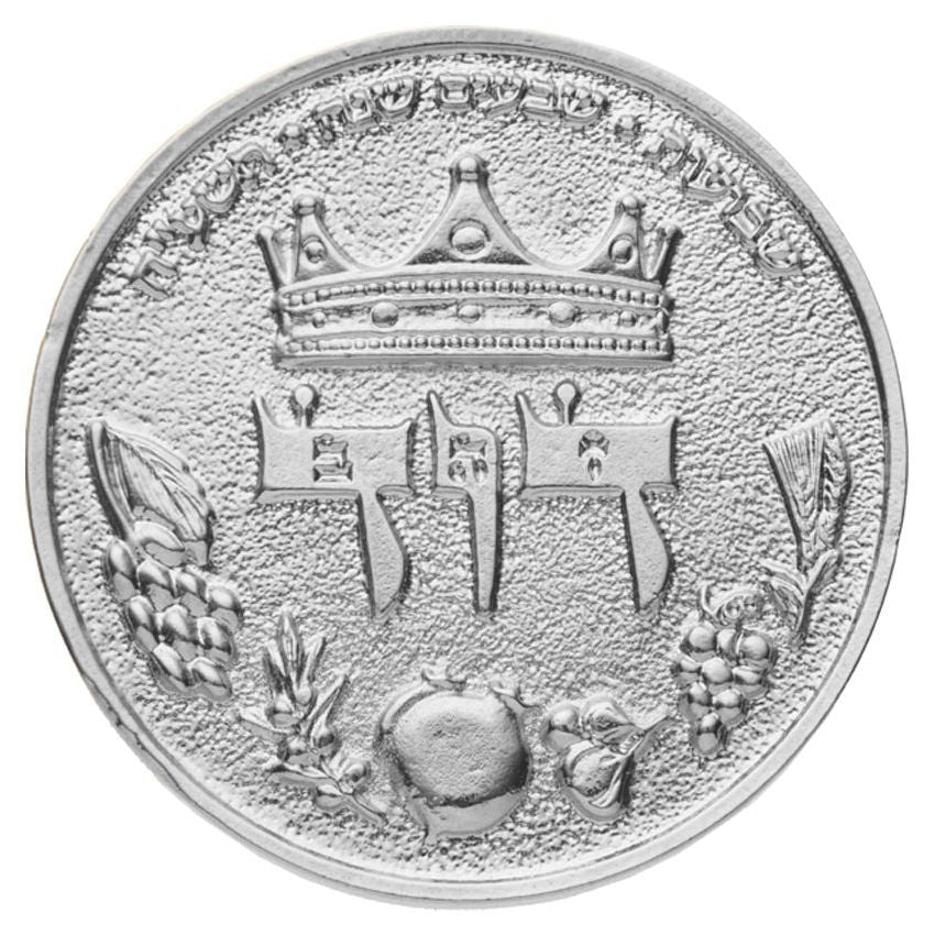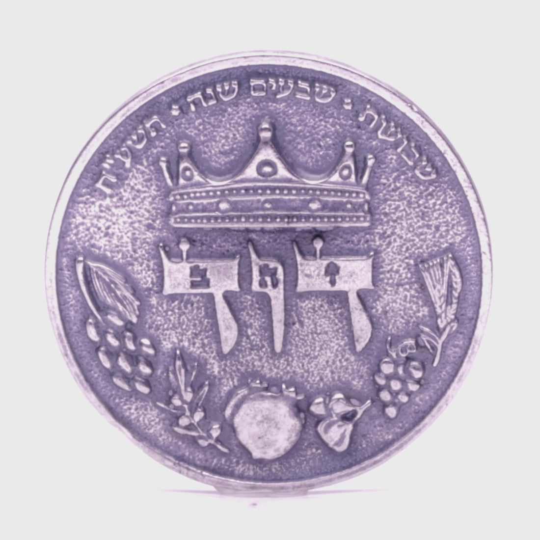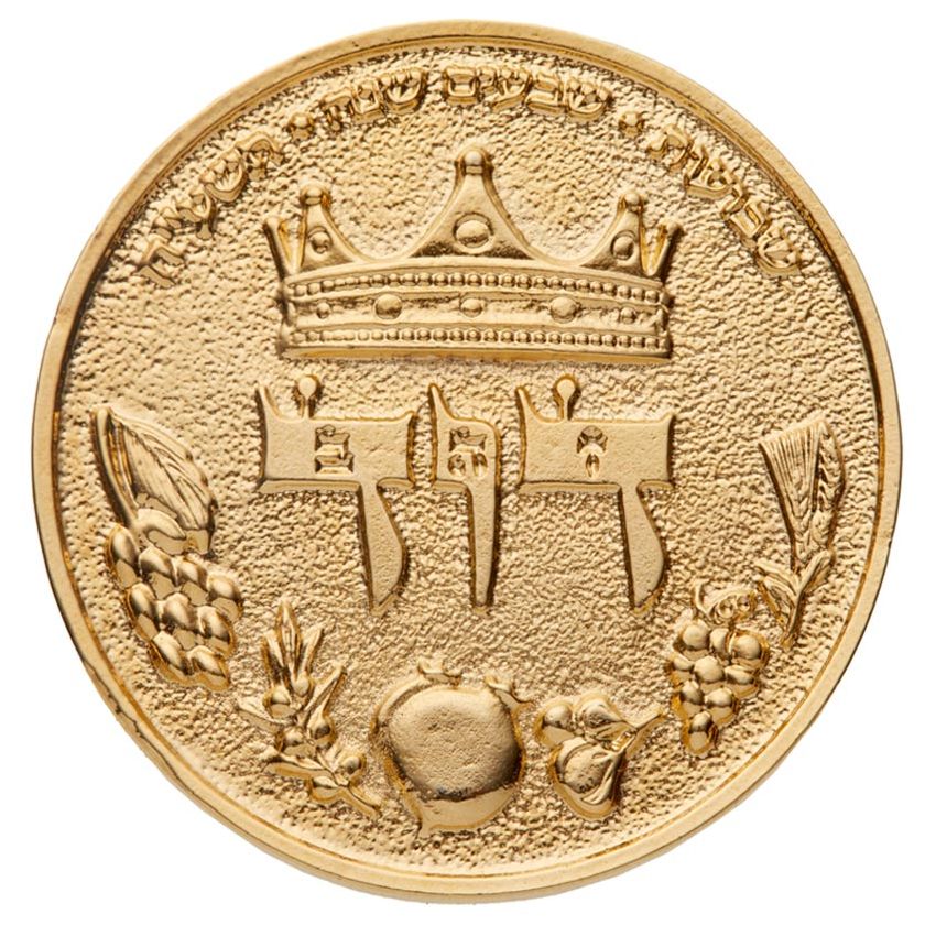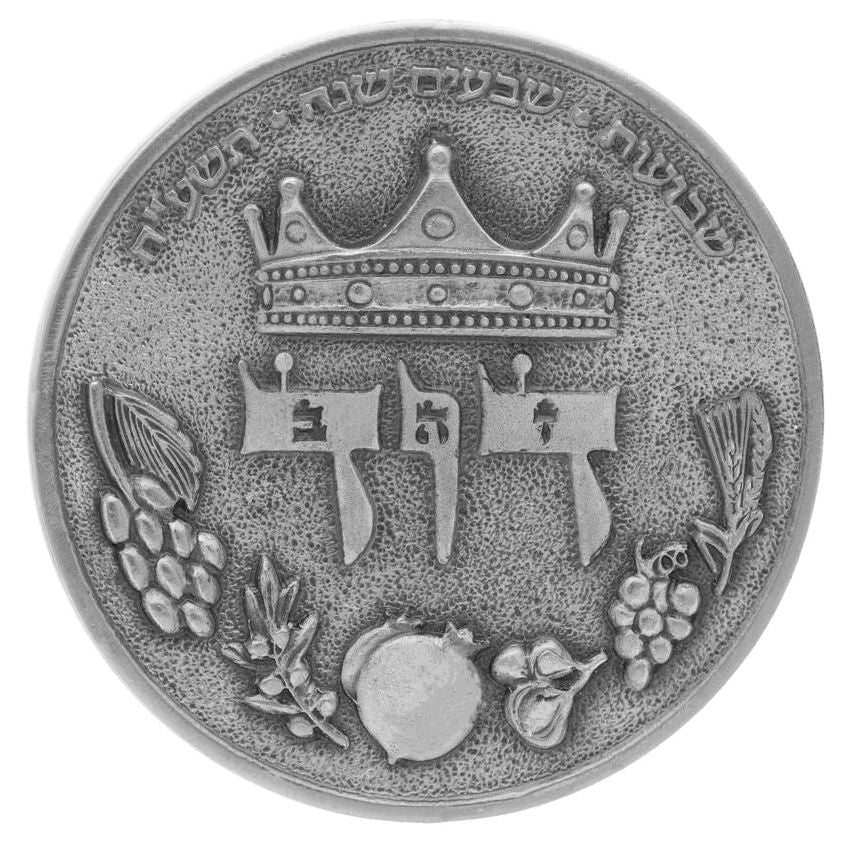 * **Context:** This inscription marks the festival of **Shavuot** during the **seventieth year** of the State of Israel, which occurred in the Hebrew calendar year **5778** (corresponding to 2018). The connection is profound: Shavuot, which celebrates the giving of the Torah at Sinai, is also the traditional date of both the birth and death of King David. Therefore, the coin commemorates the 70th anniversary of the modern state on the very day associated with its greatest king and the foundation of its spiritual life.