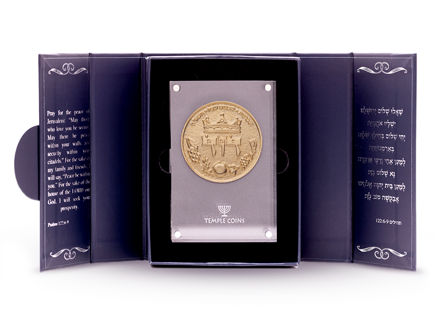 * **Significance:** This act establishes the sacred site of the future Temple through a legitimate, honorable transaction. It teaches that offerings to God require a meaningful sacrifice. By placing this verse on the coin, it connects the hope for a future Temple directly to King David's foundational act of acquiring the land with integrity. The inscription is also rendered in English ("David bought the threshingfloor") and Arabic, underscoring the historical nature of the claim to this holy place.