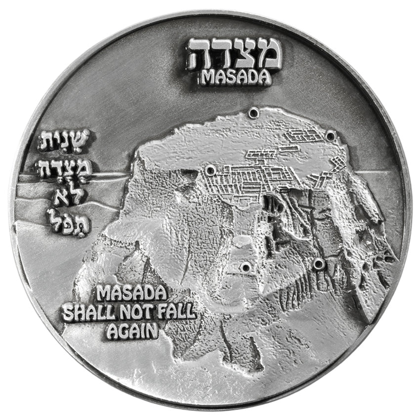 This phrase is the emotional and historical heart of the coin, connecting the ancient event to the present. "Masada shall not fall again" is a solemn vow that the Jewish people will never again be powerless and that the State of Israel will ensure their sovereignty and survival.