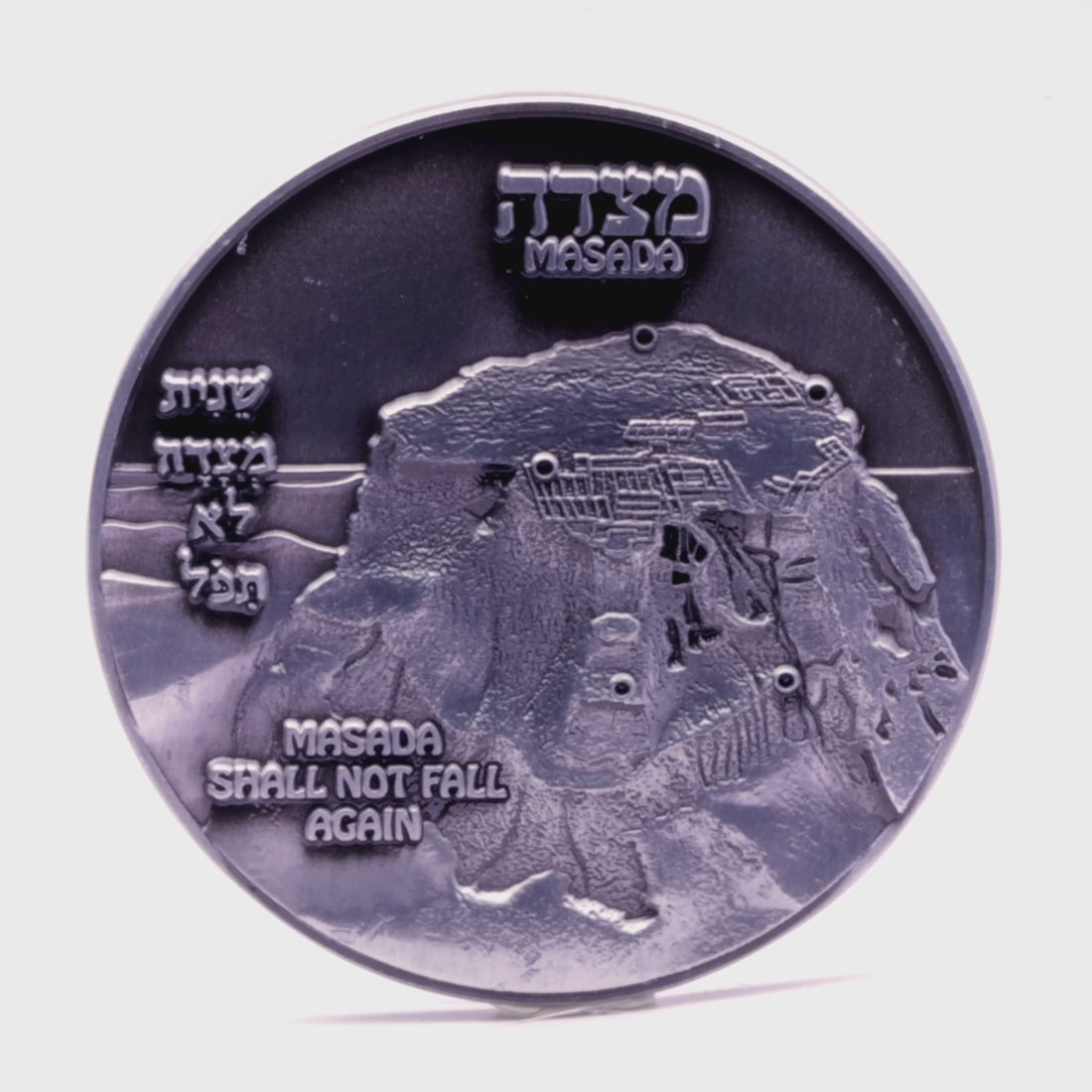 This phrase is the emotional and historical heart of the coin, connecting the ancient event to the present. "Masada shall not fall again" is a solemn vow that the Jewish people will never again be powerless and that the State of Israel will ensure their sovereignty and survival.