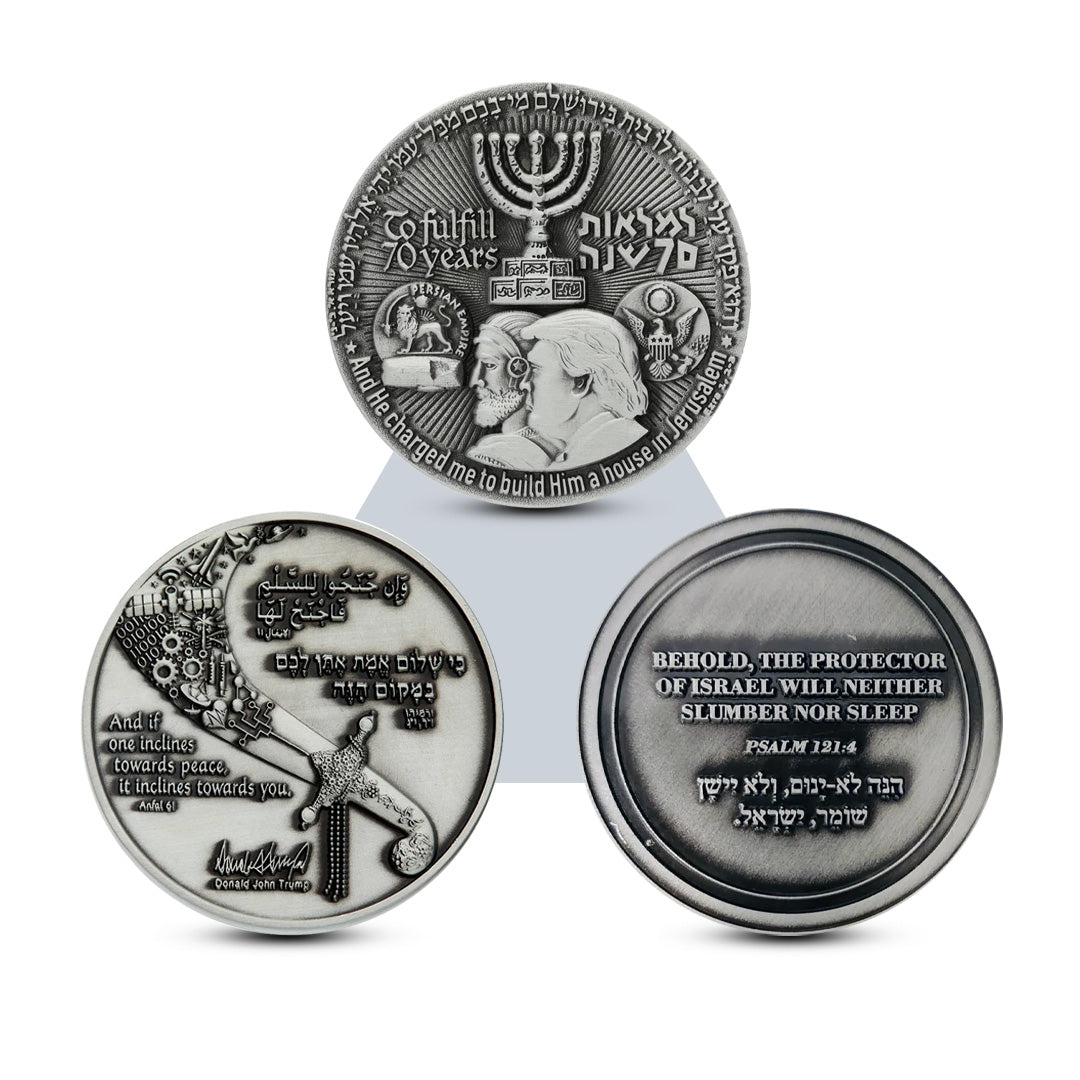 The Symbols of Triumph Set unites three commemorative pieces marking Israel’s resilience and historic alliances: the Trump Triumph Medal, 70 Years Israel Redemption Memorabilia, and Abraham Accord Israel-UAE Memorabilia Set. Together, these pieces embody themes of redemption, unity, and visionary leadership, symbolizing Temple Coins’ dedication to celebrating milestones of peace and endurance in Israel’s journey.